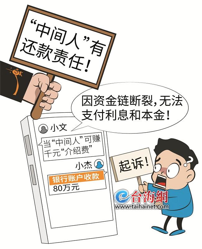 以为只是当个“中间人”,帮别人借钱周转,就能轻松赚笔介绍费,没想到最终要为80万元借款“买单”。近日,思明区法院发布了这样一起因“中间人”代借引发的纠纷,给不少人敲响了警钟:看似简单的“牵线搭桥”,背后可能藏着沉重的法律责任。