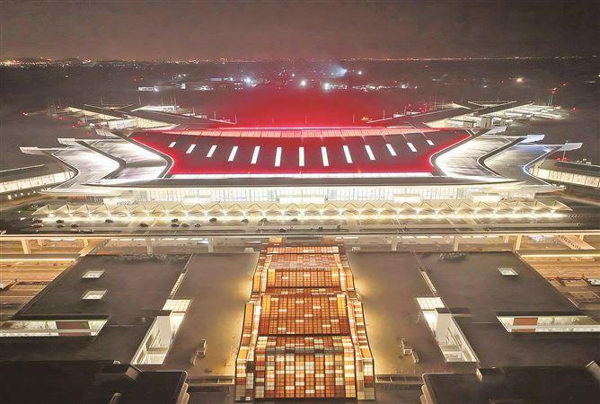 俯拍航站楼夜景。