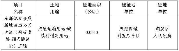 根据《中华人民共和国土地管理法》《中华人民共和国土地管理法实施条例》《厦门市集体土地征收与补偿若干规定》等有关规定,经《福建省人民政府关于翔安区2025年度第三十七批次农用地转用和土地征收的批复》(闽政地厦〔2025〕76号)批准,需征收翔安区凤翔街道刘五店社区集体土地0.0513公顷,作为东部体育会展新城滨海公园大道(翔安南路-翔安隧道段)工程项目用地。现将有关事项公告如下。
