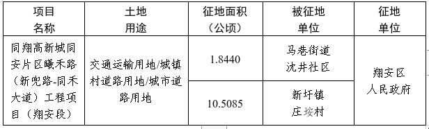 厦门市翔安区人民政府关于同翔高新城同安片区曦禾路(新兜路-同禾大道)工程项目(翔安段)土地征收的公告