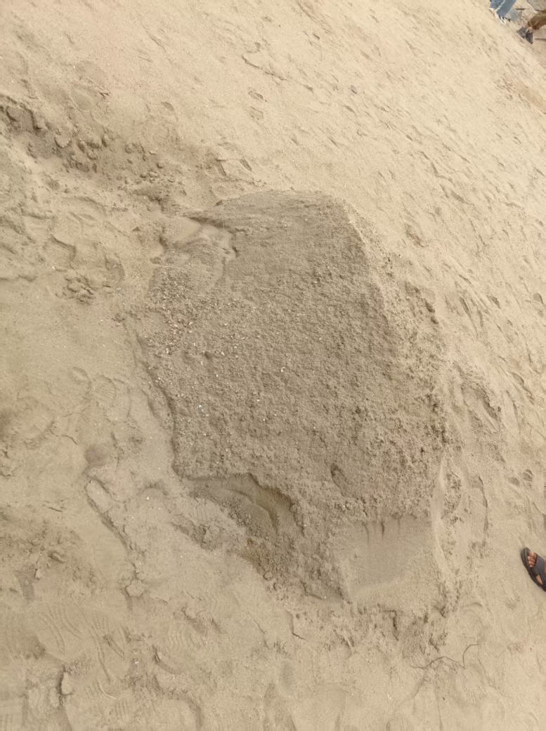 2.“筛砂机”出砂口地面有一堆细砂,高60厘米,长160厘米,底宽120厘米许,呈三角长条形;