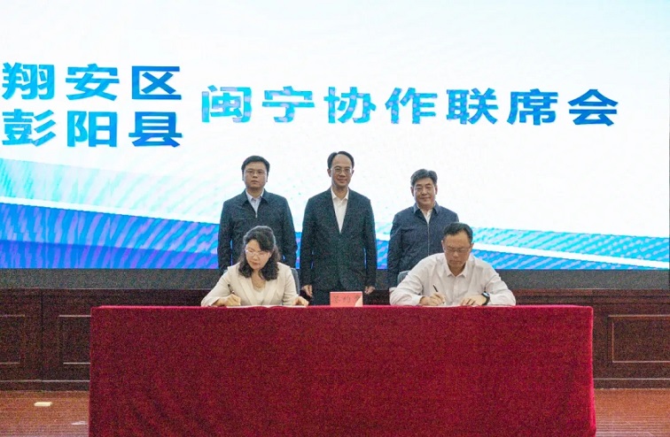 在翔安区—彭阳县闽宁协作联席会上,县委副书记、政府县长周浩介绍了彭阳经济社会发展情况和闽宁协作情况,两县区围绕产业、就业、人才等领域作了交流发言,翔安区副区长黄亚祥与彭阳县委常委、政府副县长高云霞分别代表翔安区、彭阳县两地签订了协作协议。