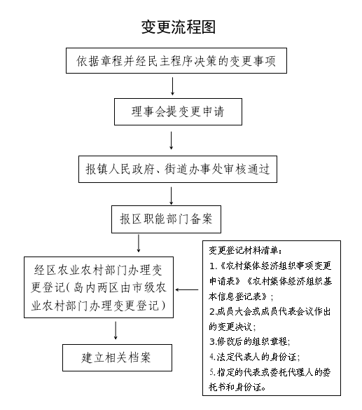 2.对于符合变更登记条件的,在受理之日起15个工作日内办理相关手续,更换《农村集体经济组织登记证》。