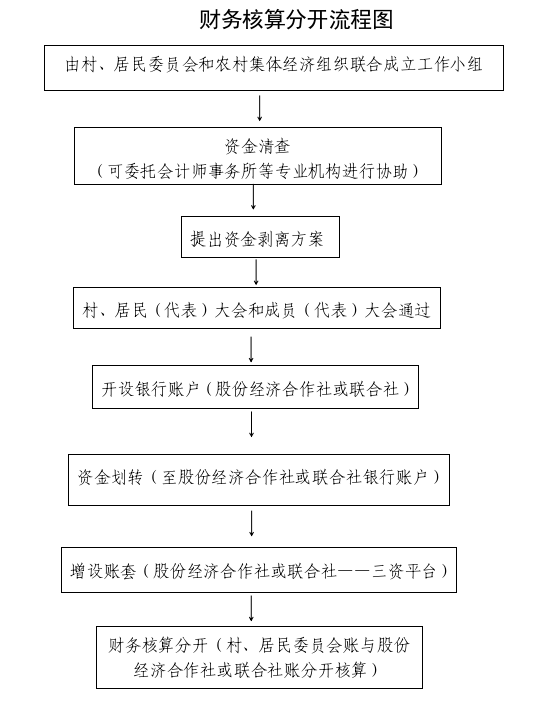 (四)财务核算分开。农村集体经济组织和村(居)民自治组织实行分账管理。