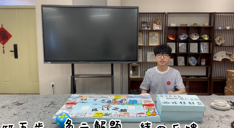 《数学大富翁-厦门之旅》为培智生活数学专属教具,以游戏赋能生活数学教学为核心设计理念,融合经典大富翁游戏框架和生活数学数与运算的核心知识点,配套游戏棋盘、角色棋子、数字筛子、任务卡片、仿真货币等组件,设置8类生活场所中30个高频生活场景的300个生活中百以内的加减法应用题,同时融入地方本土文化特色(厦门旅游景点)为任务情境。游戏以小组合作竞赛的模式参与,通过掷骰子、领任务、算结果、得积分的游戏流程,将数的运算抽象内容转化为具象实践,构建“场景-任务-运算”的三维闭环,有效激发培智学生学习兴趣,延长学生注意力集中时间,同步培养规则意识、协作能力,提升生活数学应用能力。