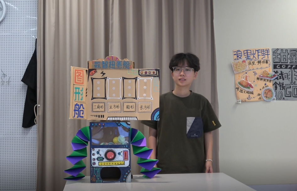 《数智扭蛋舱》是融合数学启蒙与扭蛋趣味的创新交互式教学装置,以“扭一扭、学一学”模式,将抽象数学转化为趣味互动体验。装置头部设三大交互版面:数字舱动态展示扭蛋数量与0-10数字对应关系,帮孩子建立数感;加减舱以扭蛋为操作实体,让孩子在增减扭蛋中完成20以内加减法;图形舱让孩子打开扭蛋取图形卡片贴对应区域,深化图形分类认知。机器人身体为扭蛋机,使用者转旋钮取扭蛋后,按引导匹配卡片与面板内容,学习数字、图形及加减法,助力孩子轻松掌握数学基础,激发学习热情。
