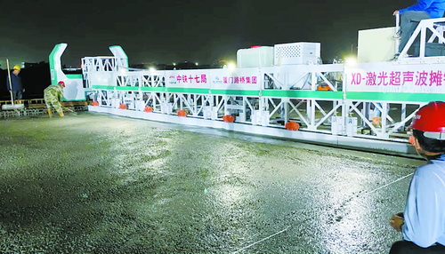 在翔安大桥A4标段现场,一项项科技成果发挥着重要作用,让工程建设顺利推进。“激光超声波摊铺机及全自动拉毛机的投入使用,大大提升了桥梁顶面的平整度。”质安大队相关执法人员向记者介绍了各项科技成果。