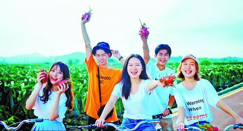幸福翔安,居民安居乐业。图为居民在翔安大宅火龙果基地游玩留影。(翔安区 供图)
