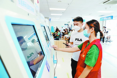 翔安居民享受家门口的优质医疗服务。图为志愿者在厦门市第五医院服务。(唐光峰 摄)