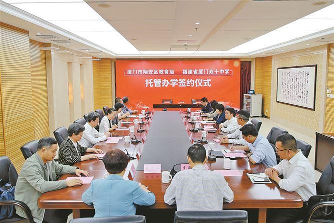 翔安区教育局和厦门双十中学举行托管办学签约仪式。(朱毅力 摄)