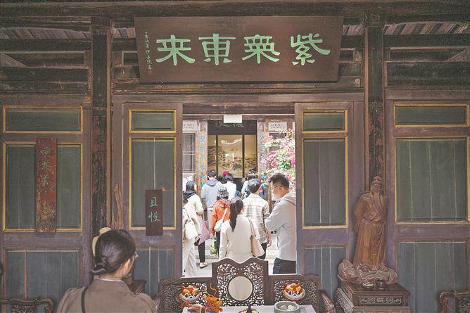 从破败的宗祠,到修复后从村史馆演变为公共文化空间,向东厝也和我素庐一样,经历了重生。这座澳头范围内唯一一座坐西朝东的古厝,自清光绪年间建起至今,已有百余年。如今,它被打造成村史馆与美学馆的融合体,生动再现了澳头的历史风貌与文化底蕴。以“水墨丹青绘村史”为创意,馆内展示了澳头古代的十二景与全景图,还有珍贵的宋代瓷片等文物。“活化利用就是最好的保护,”漫步团成员张先生认为,“古厝以打捞本地历史的方式,焕发出全新的活力,充分发掘了内在价值,成为展示厦门历史文化遗存与底蕴的重要窗口。”