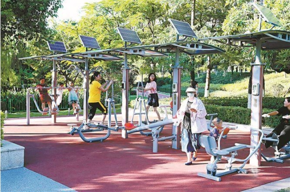 居民在鼓锣公园的室外智能健身房锻炼身体。(海西晨报记者 唐光峰 摄)