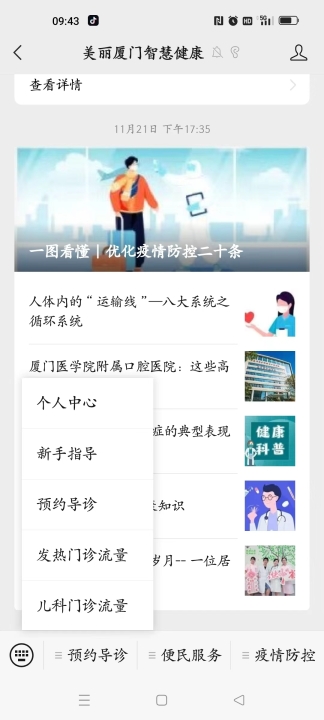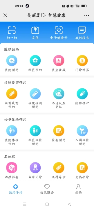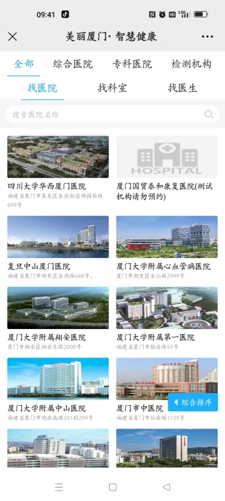 3、选择“医院预约”,进入厦门市各大医院预约界面