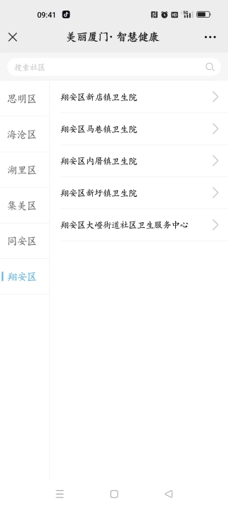 3、选择“社区预约”,进入厦门市各区社区卫生服务中心或者卫生院门诊预约界面