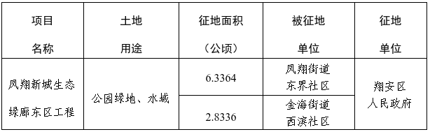 厦门市翔安区人民政府关于凤翔新城生态绿廊东区工程项目土地征收的公告