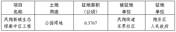 厦门市翔安区人民政府关于凤翔新城生态绿廊中区工程项目土地征收的公告