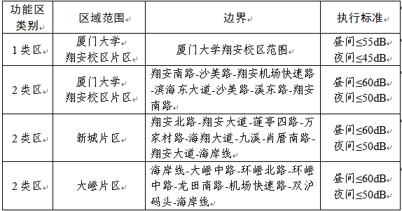 二、翔安区噪声敏感建筑物集中区域范围边界以《厦门市翔安区噪声敏感建筑物集中区域划分图》为准。