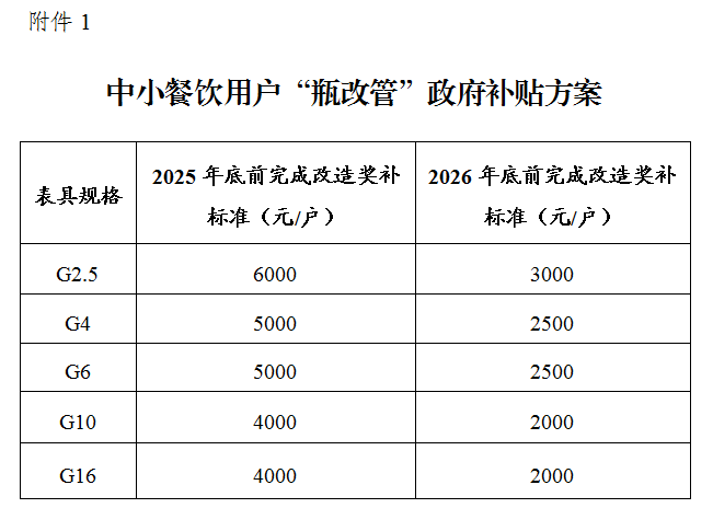 附件:1.中小餐饮用户“瓶改管”政府补贴方案