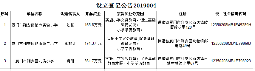 设立登记公告2019004
