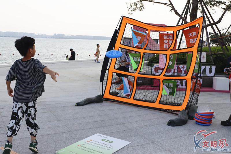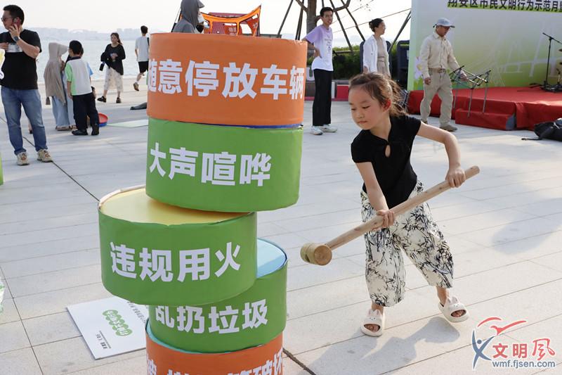 趣味游戏互动区更是人头攒动,多款融入文明理念的游戏让大家在欢笑中学习知识。“打掉不文明行为”中,参与者挥锤击碎印有“乱扔垃圾”“践踏草坪”等图案的泡沫模型,释放对不文明行为的抵制;“飞盘投文明”里,大家瞄准印有文明行为的网兜投掷,在竞技中强化文明意识;“垃圾分类大挑战”通过投掷对应类别垃圾沙包,帮助市民巩固露营垃圾分类知识;“文明向前冲”“文明大富翁”等游戏则将团队协作、知识问答与文明行为认知相结合,让参与者在轻松氛围中深化对文明露营的理解。