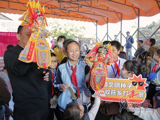展演区的精彩节目更是让人目不暇接,车鼓弄、答嘴鼓、布袋戏、歌仔戏等充满闽南特色的非遗节目轮番上演,借助非遗展演传递文明理念。活动中,非遗代表性传承人还向两所学校学生代表赠送了农民画,让非遗文化与精神文明建设实现有机融合、双向赋能。