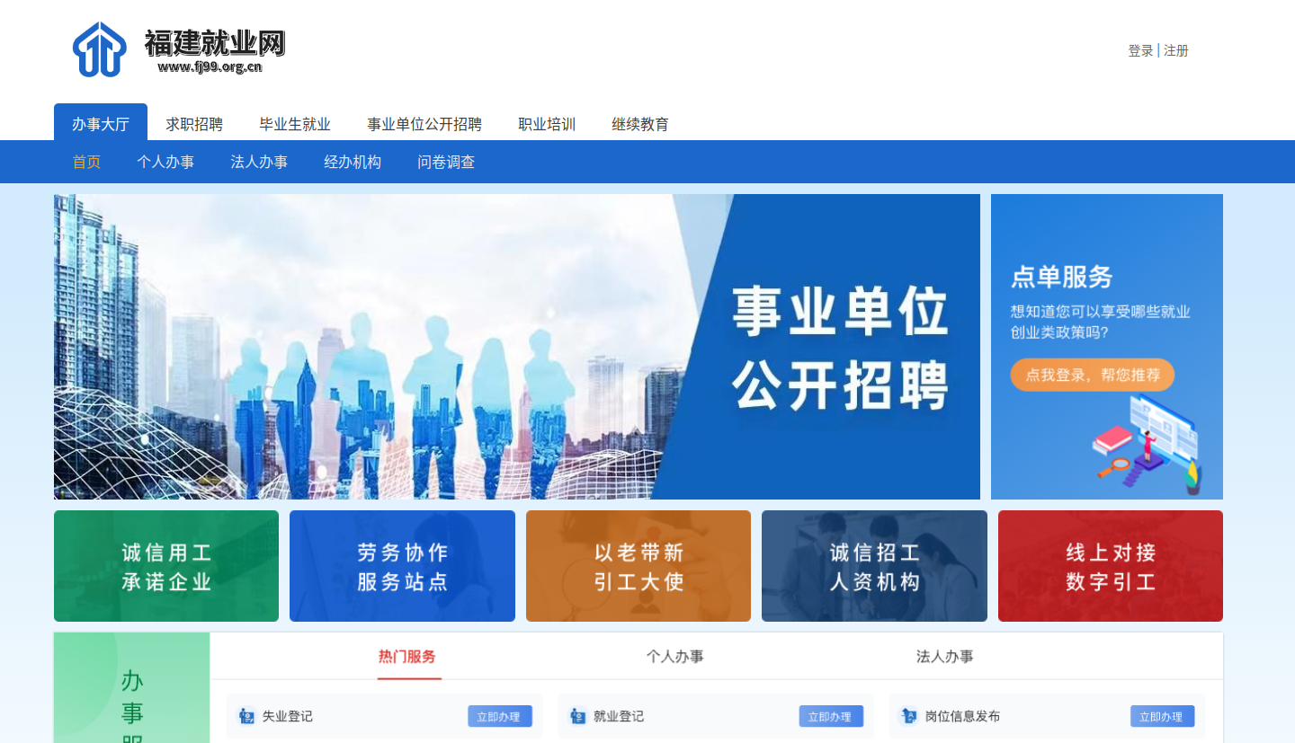 电脑端:福建就业网(https://www.fj99.org.cn/)