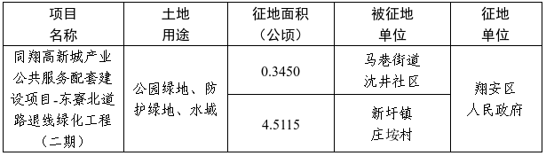 厦门市翔安区人民政府关于同翔高新城产业公共服务配套建设项目-东寮北道路退线绿化工程(二期)土地征收的公告
