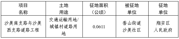 厦门市翔安区人民政府关于沙美南支路与沙美西支路道路工程项目土地征收的公告