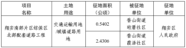厦门市翔安区人民政府关于翔安南部片区综保区北部配套道路工程项目土地征收的公告