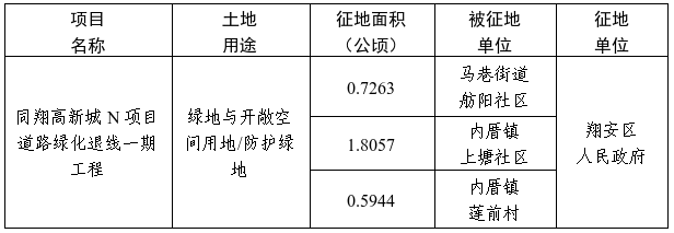 厦门市翔安区人民政府关于同翔高新城N项目道路绿化退线一期工程项目土地征收的公告