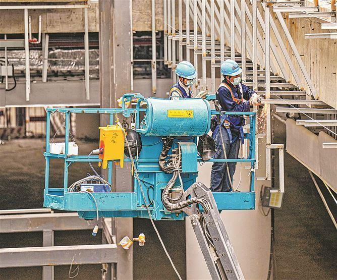 厦门翔安国际机场航站楼施工人员正进行焊接作业。(本报记者 卢剑豪 摄)