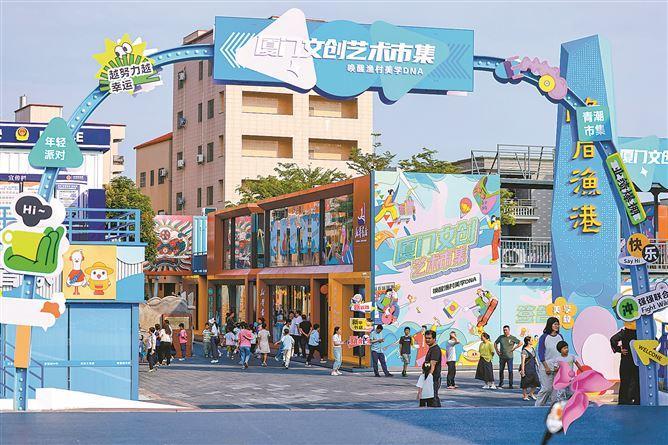 在厦门文创艺术市集,漆画展、非遗手作等展现多元艺术魅力。在融合两岸文化的望金街,闽南特色美食、闽台剑狮文化展示馆等丰富市民游客的游玩体验。今年以来,欧厝社区创新探索“文创IP+旅游”的文旅融合新模式,积极推进古厝收储和活化利用,打造文化地标。