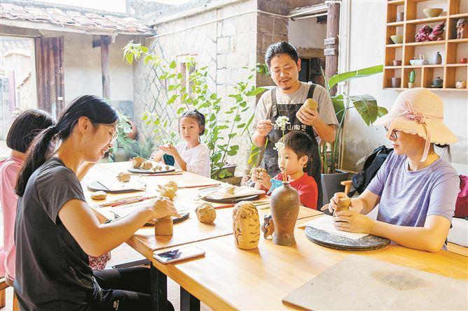 陶艺家陈青山是首批入驻艺术家。他说,在黄厝村可以找到儿时乡间“瓦屋听雨”的感觉,创作灵感泉涌。他设计的文创产品畅销市场,不仅为自己带来了经济效益,也为黄厝村的艺术产业发展增添了光彩。