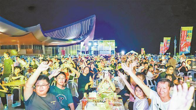 暮色初临之际,1.3万平方米的商街上流光溢彩,音浪舞台区成为全场的焦点。多个专业乐队轮番助阵,多元节目满足不同年龄段市民的喜好;舞台下,年轻人举杯畅饮,亲子游客在主办方设置的休憩区共享海风轻拂的惬意舞台时光。
