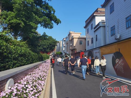 分享环节结束后,欧厝社区乡村振兴指导员王军士化身向导,带领参与者开启“行走的课堂”。众人漫步在欧厝街巷,穿梭于红砖古厝之间,感受浓郁的渔村风情,实地探寻“社区焕新密码”,沉浸式体验文化赋能乡村振兴的生动实践成果。经过城中村现代化治理,曾经的传统渔村欧厝社区已实现华丽蜕变,成为传统风情与现代潮流完美融合的宝藏村落。