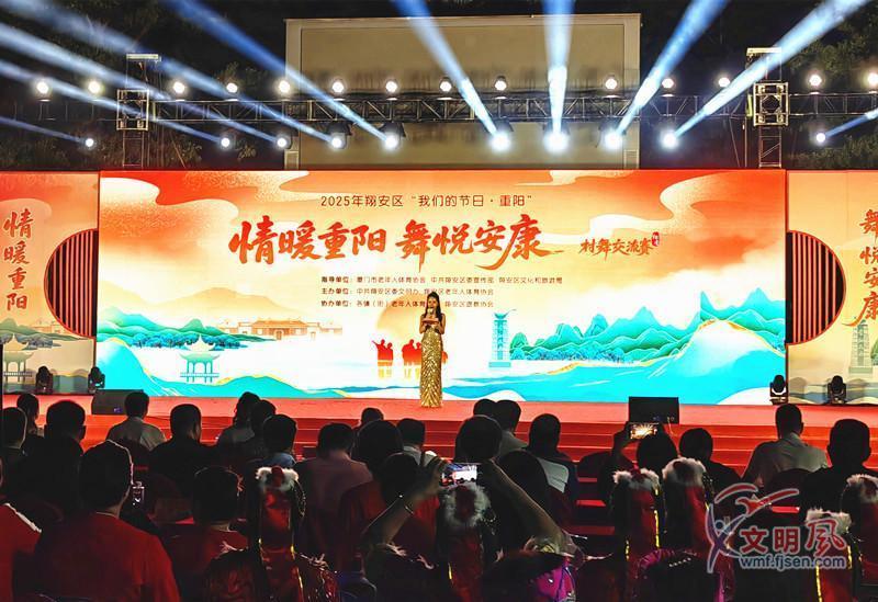 10月27日晚,厦门市翔安区法治文化广场华灯璀璨,热闹非凡,2025年翔安区“我们的节日・重阳”——“情暖重阳 舞悦安康”村舞交流赛在此举行。来自全区各镇(街)老体协及区退教协的10支队伍齐聚一堂,以优美的舞姿传递温情,以欢快的旋律凝聚心意,共同庆祝中华民族传统的“敬老节”。