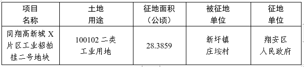 厦门市翔安区人民政府关于同翔高新城X片区工业招拍挂二号地块项目土地征收的公告