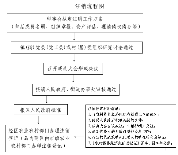 2.申请注销的农村集体经济组织,须经成员大会表决通过,并经县级以上地方人民政府审核批准后,及时办理银行销户手续,向原登记赋码管理部门申请办理相关手续,交回《农村集体经济组织登记证》正本和副本、公章。