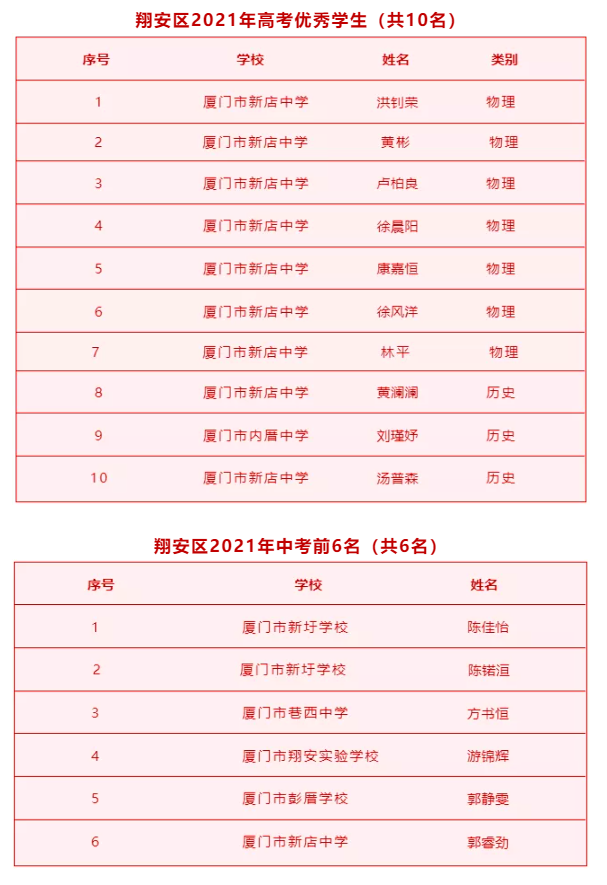 8月20日,翔安区教育局、翔安区教育基金会联合表彰2021年翔安区属学校中高考优秀学生,获得表彰的同学每人获得2000—5000元不等的奖学金。